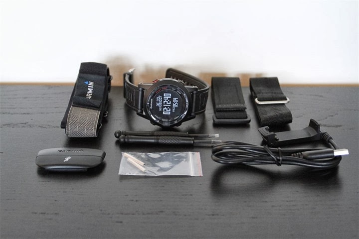 W komplecie znajduje się klips ładujący, który poza funkcją ładowania umożliwia także komunikację z komputerem (m.in. przesyłanie treningów, aktywności, tras, punktów itp.). Poza paskami ztworzywa otrzymujemy dwa paski materiałowe, zapinane na rzep. Paski te umożliwiają m.in zapięcie Fenixa 2 na kurtce snowboardowej.