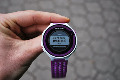 - alert tempa, włącz alarm, gdy tempo różni się od ustawionego (FR 210 – brak)